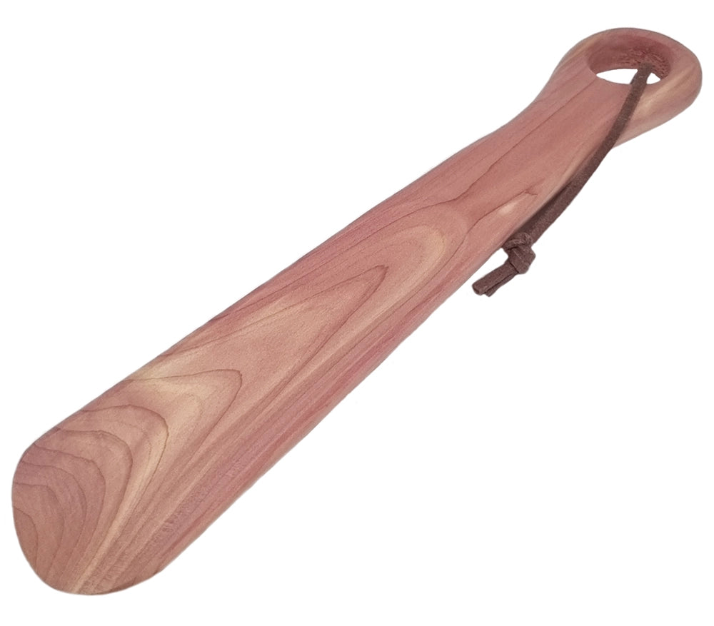 Ett praktiskt skohorn i naturligt cederträ, 23 cm långt och perfekt för både hemmet och resan. Det ergonomiskt skålade utförandet ger optimal passform och hög komfort vid användning. Det generösa upphängningshålet upptill gör det enkelt att hänga upp skohornet eller komplettera med ett läderband.