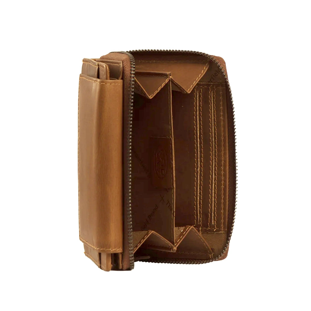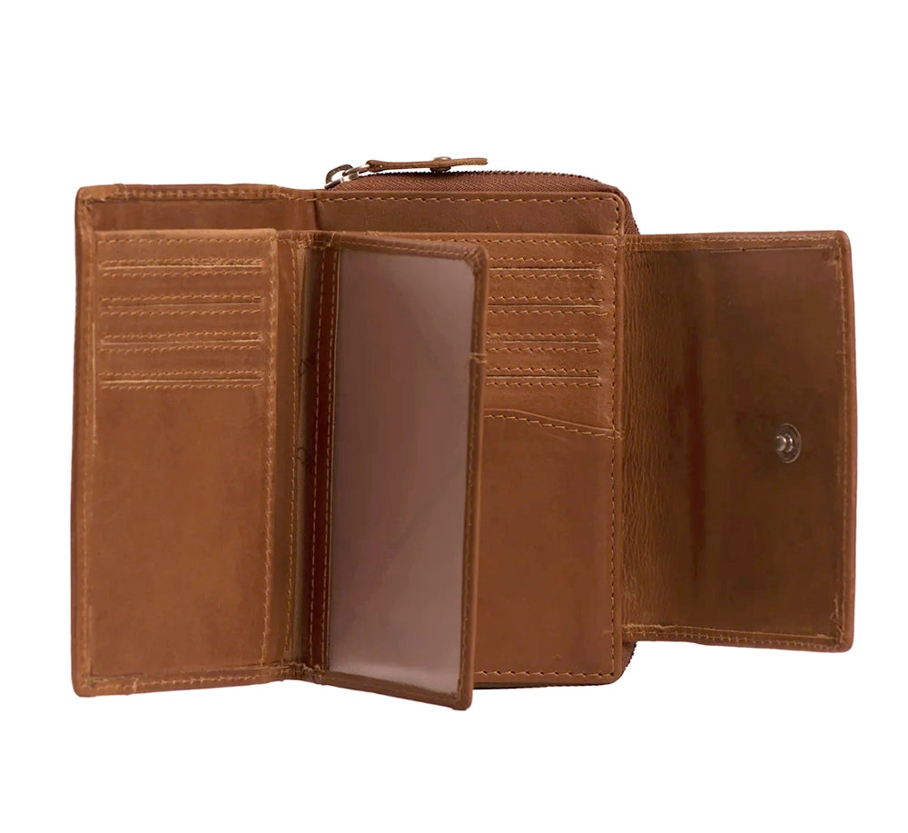Plånboken har 16 fack för kort och ett sedelfack. Dessutom finns ett myntfack med dragkedja för småpengar.