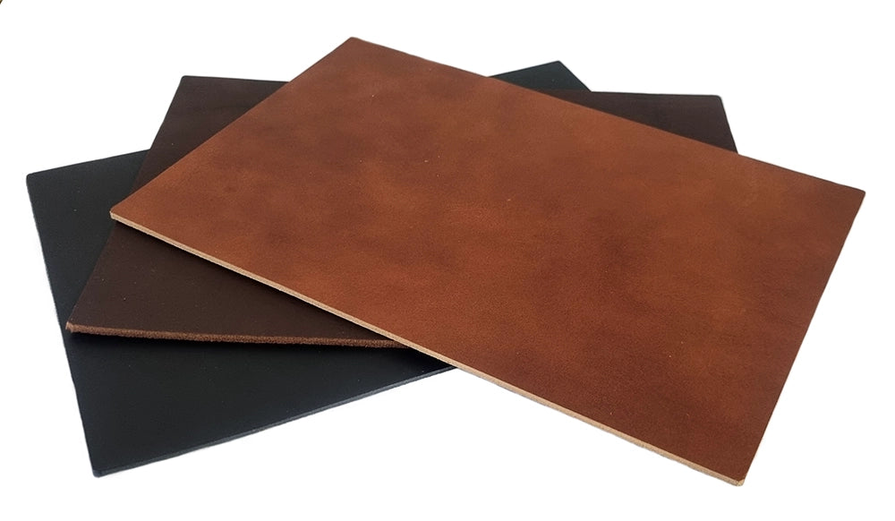 Spillbitar av kraftigt pigmenterat läder. Tjockleken kan variera, men är oftast 2-3 mm.