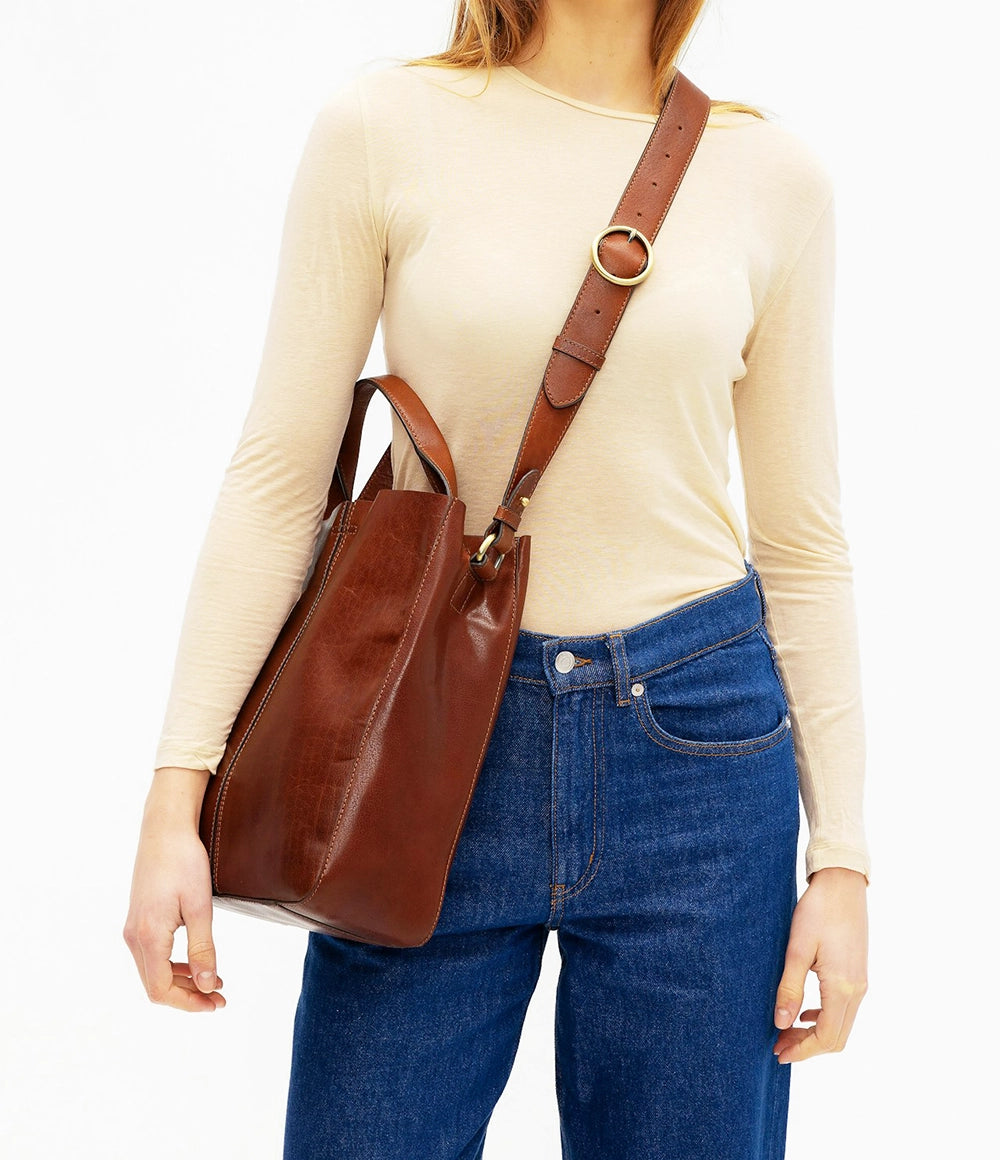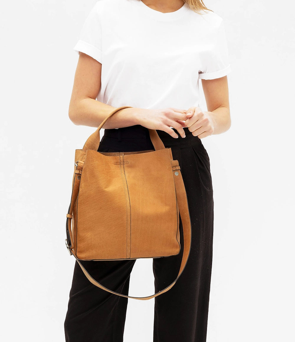Den här klassiska toteväskan är en av Saddlers mest omtyckta modeller tack vare sin stilrena design och funktionella form. Väskan har en ofodrad insida som ger en naturlig, rustik känsla och framhäver det genuina hantverket.