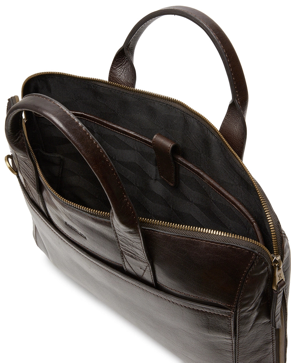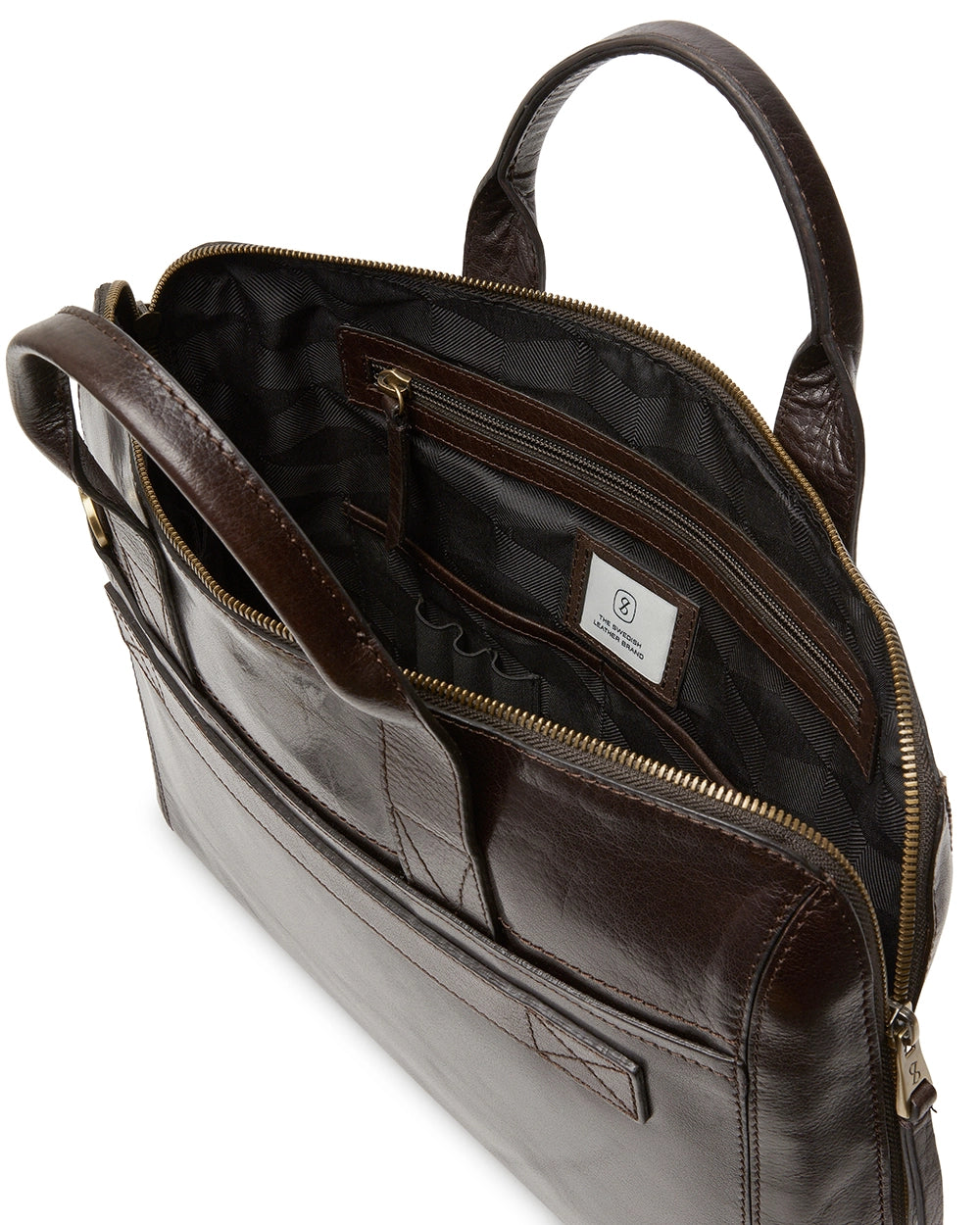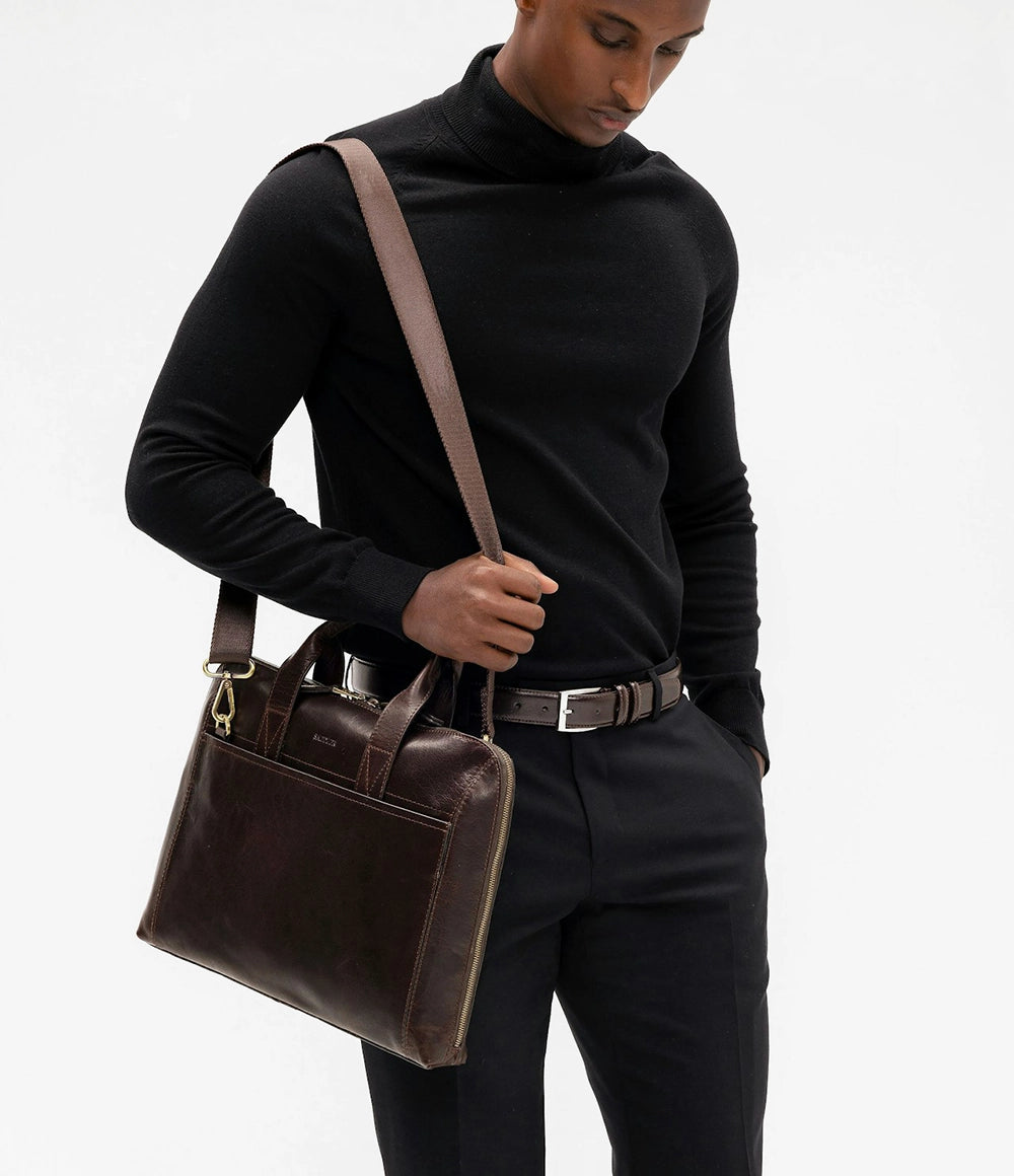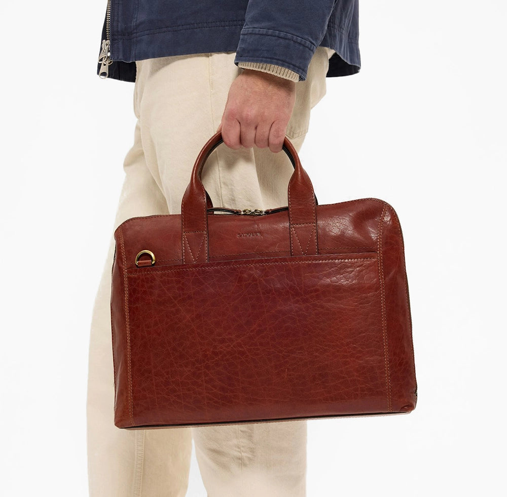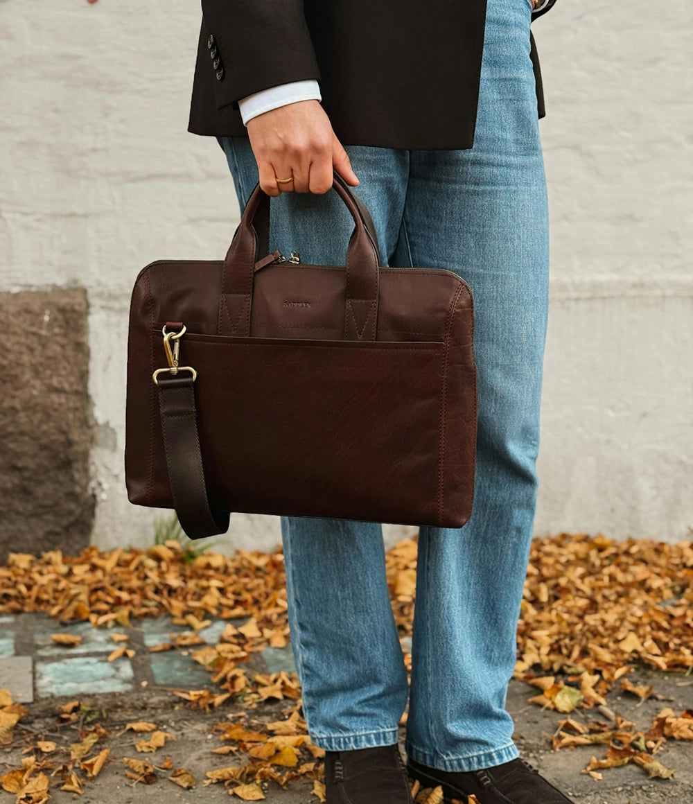 Gustav är den perfekta datorväskan för herr som söker en stilren portfölj i läder – idealisk för jobb, pendling eller affärsresor. En Saddler-laptopväska där klassiskt hantverk möter modern funktionalitet.