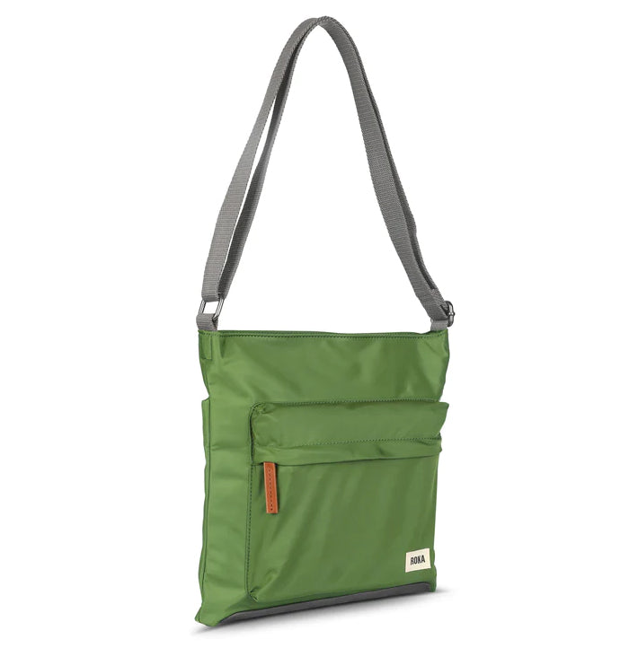 Kennington är en klassisk axelremsväska från Roka London. Kennington är tillverkad i hållbar nylon som framställs av återvunna flaskor. Materialet (rPET) är slitstarkt, väderbeständigt och vattenavvisande. Det unika nylontyget från Roka har en slät och glänsande yta.