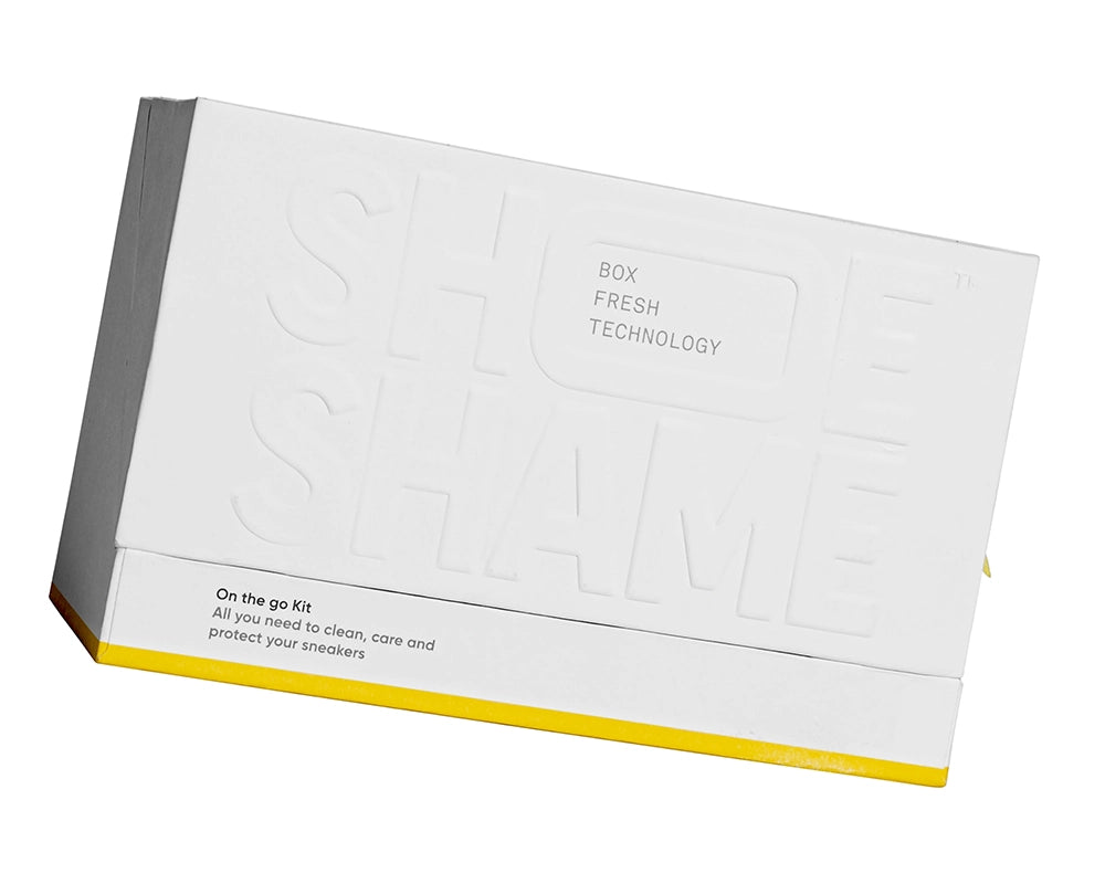 Shoe Shame On the Go Kit är ett sneakervårdskit i resestorlek för alla som ständigt är på språng! Kitet innehåller det nödvändigaste för rena och fräscha sneakers, allt i resevänliga miniflaskor. Rengöringsprodukterna är förpackade i en exklusiv kartong med flexibelt lock som går fint att packa i väskan.