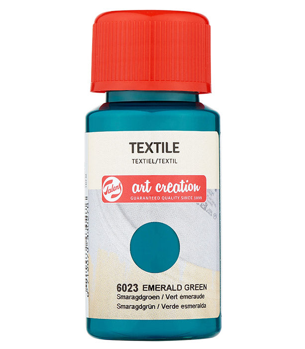TextilfärgTalens Art Creation Textile är en dekorfärg för ljusa tyger som innehåller minst 50% bomull. Färgen finns i 40 olika nyanser, inklusive pärlemorfärger, neonfärger, reflekterande textilfärg (även för mörkfärgad textil) samt en självlysande färg, Glow-in-the-dark.Dekorera tyget med hjälp av en svamp eller mjuk borste. Efter torkning i 30 minuter fixeras färgen med strykning.Efter fixering kan tygerna tvättas vid upp till 40° C, och kan även torktumlas.